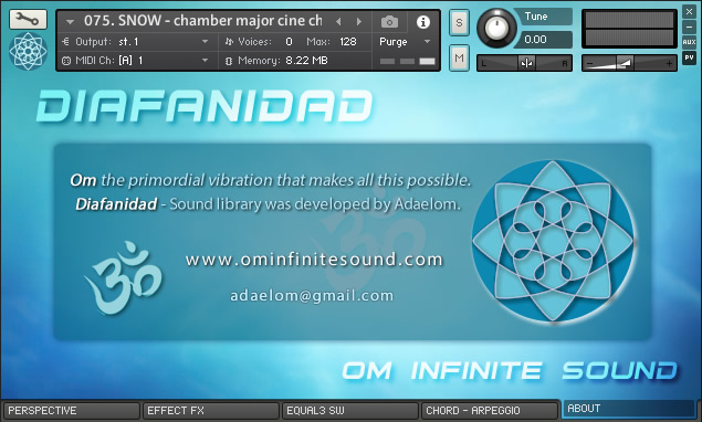 ॐ DIAFANIDAD is a new KONTAKT library, specially designed acoustically and digitally with (8) amazing instruments to inspire and recreate fantastic compositions. Samples with great sound quality and light and fast loading, allow to add a greater number of instruments without consuming too many resources. With an intuitive and easy-to-use interface, it has the necessary tools for musicians, experts or beginners so they can customize instruments with fabulous sounds. LIBRARY SPECS: • 8 sample libraries with 1.88GB installed and a total of 575 files. • 494 NCW samples with Stereo audio and depth 24 Bit / 44.100Hz. • 27 IRC Convolution environments to create impressive real spaces. • Keyboard with 72 notes and partition for main Chords application. • ADSR modules and LP and HP filters. Effects Console & Arpeggiator. • 72 files Presets NKI Natives Ins, parameterized for each Instrument. • Switches to apply Compression, Cinema, Dual Voice and Portamento. • 3-Band Equalizer and Switches for new Effects and audio processes. REQUIREMENTS: • Windows 10, macOS 10.9 or later. • Core Intel I3 or AMD Ryzen 3 or higher. • 10 GB of minimum hard disk capacity. • 8 GB RAM memory, 16 GB recommended. • Native Instruments Full Kontakt version 6.3.1 • Too much Creativity and Inspiration.😊