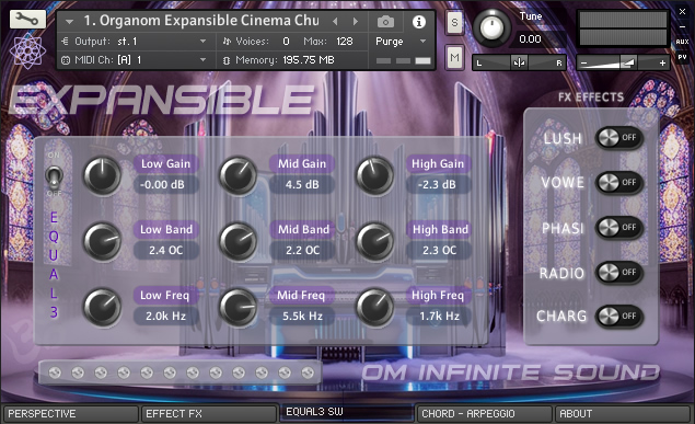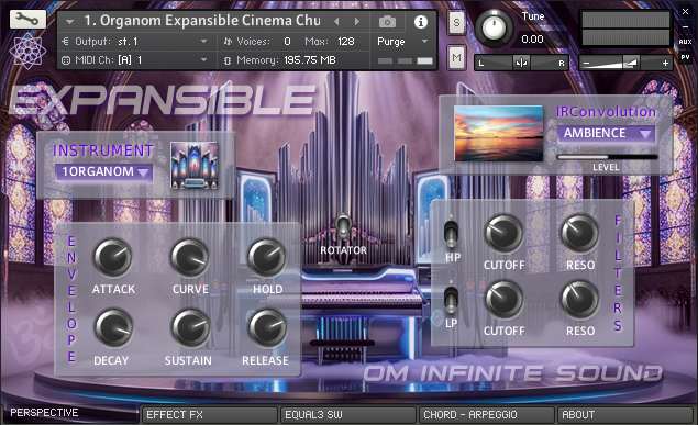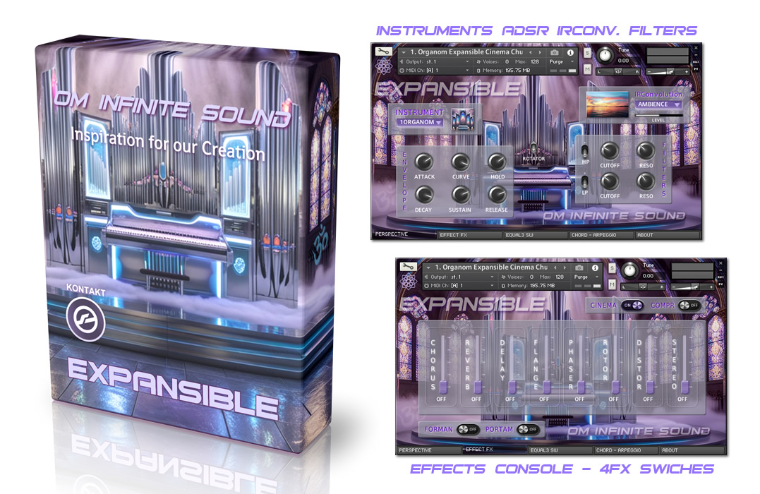 ॐ EXPANSIBLE is a beautiful collection of organ sounds, each instrument in this library has been designed to achieve a wonderful deep and emotional sound. Samples with great sound quality and light and fast loading, allow adding a greater number of instruments without consuming too many resources. With a classic and intuitive interface that is easy to use, it has the necessary tools for expert or beginner level musicians to customize the instruments in surprising ways. LIBRARY SPECS: • 8 sample instruments 2.80 Gigabytes installed, total 592 files. • 576 NCW samples with Stereo sound and depth 48 kHz – 32 Bits. • 27 IRC Convolution environments to recreate impressive real spaces. • New ten level slider to apply the intensity of the IRC space. • Keyboard with 72 notes and partition for application of main chords. • ADSR modules and LP and HP filters. Various effects console and Arp. • Quick load selector menu for eight instruments and new Fx Rotator. • Switches to apply Compression, Cinema Mode, Formant and Portamento. • 3-Band Equalizer and Switches for new Effects and audio processes. • Twenty-two chord selector knob with midi note pressed indicator. REQUIREMENTS: • Windows 10, macOS 10 or later. • Core Intel I3 or AMD Ryzen 3 or higher. • 20 GB of minimum capacity in HDD ideal SSD. • 8 GB RAM memory, 16 GB recommended. • Native Instruments Full Kontakt version 6.7.0 • Too much Creativity and Inspiration.😊
