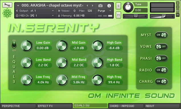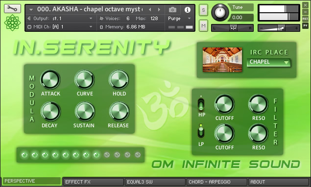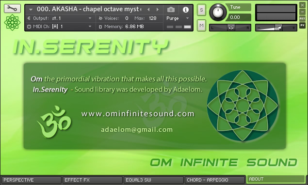 PACK INSTRUMENTS: 01. TIBETPAN - Combination of Hang Drum and Bowl. 02. VITATRON - Cosmic sound synthesized super Pad. 03. UKELELE - Natural sound of two soprano Ukuleles. 04. AKASHA - Meditative Atmosphere Pad synthesizer. 05. VEENOM - Pluck of Traditional Indian Instrument. 06. FOREST - Great Native American Flutes ensemble. 07. HARPAN - Hybrid sound of acoustic & digital Harp. 08. HARMON - Expressive floor Harmonium from India.
