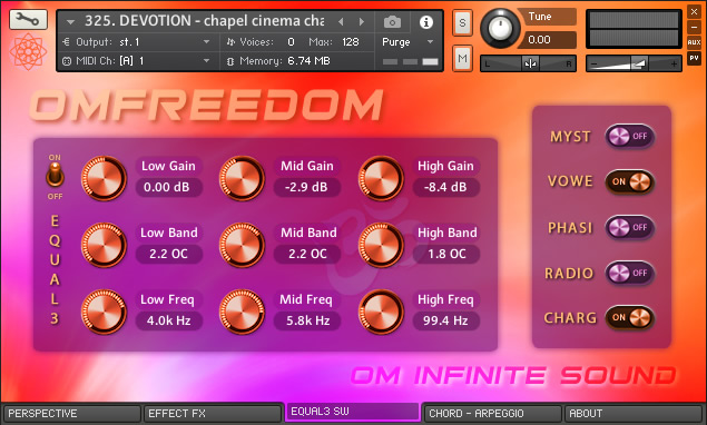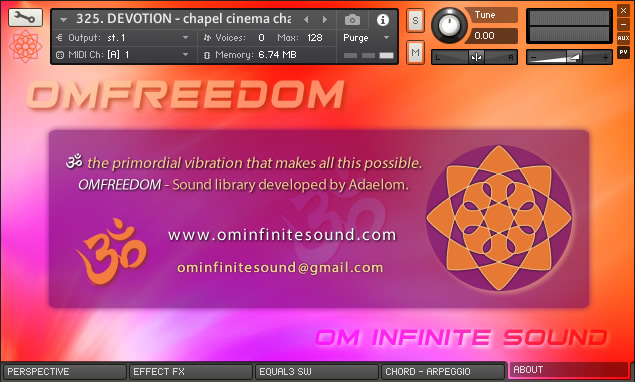 ॐ OMFREEDOM is a new KONTAKT library, specially designed acoustically and digitally with (8) amazing instruments to inspire and recreate fantastic compositions. Samples with great sound quality and light and fast loading, allow to add a greater number of instruments without consuming too many resources. With an intuitive and easy-to-use interface, it has the necessary tools for musicians, experts or beginners so they can customize instruments with fabulous sounds. LIBRARY SPECS: • 8 sample libraries with 2.03GB installed and a total of 580 files. • 555 NCW samples with Stereo audio and depth 24 Bit / 44.100Hz. • 27 IRC Convolution environments to create impressive real spaces. • Keyboard with 72 notes and partition for main Chords application. • ADSR modules and LP and HP filters. Effects Console & Arpeggiator. • 72 files Presets NKI Natives Ins, parameterized for each Instrument. • Switches to apply Compression, Cinema, Dual Voice and Portamento. • 3-Band Equalizer and Switches for new Effects and audio processes. REQUIREMENTS: • Windows 10, macOS 10.9 or later. • Core Intel I3 or AMD Ryzen 3 or higher. • 10 GB of minimum hard disk capacity. • 8 GB RAM memory, 16 GB recommended. • Native Instruments Full Kontakt version 6.3.1 • Too much Creativity and Inspiration.😊